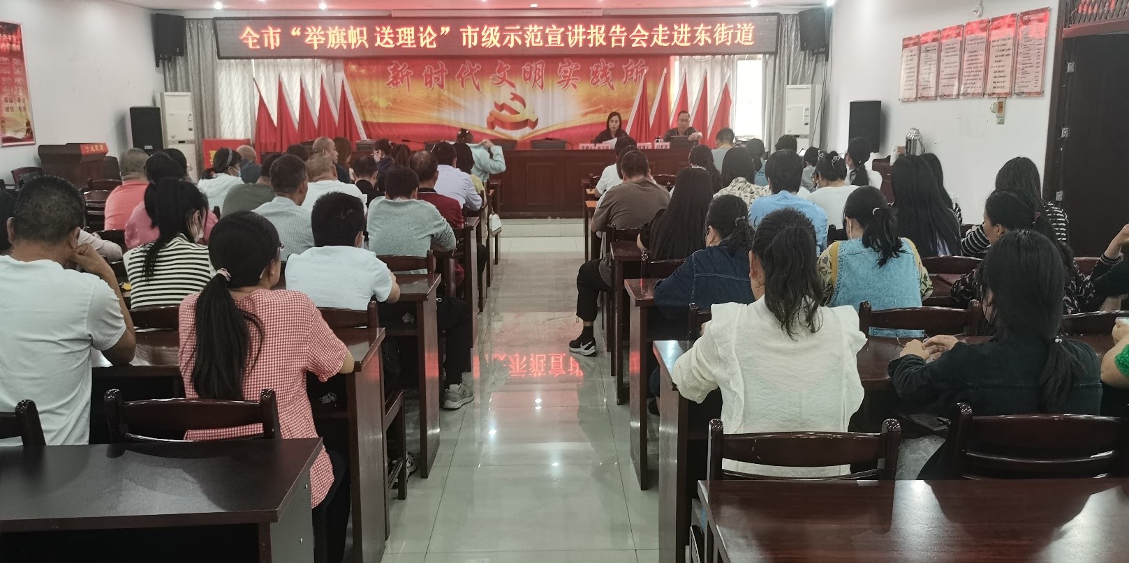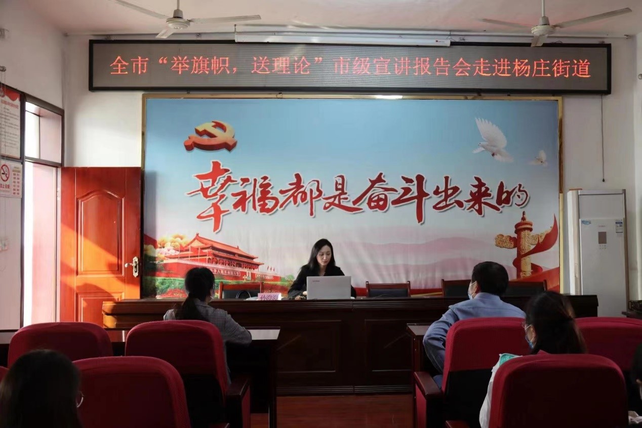 为把学习贯彻习近平总书记在省部级主要领导干部专题研讨班上重要讲话精神、《习近平谈治国理政》第四卷不断引向深入。太阳成集团tyc7111cc刘奔前和孙澄澄两位老师受到中共淮北市委宣传部中共淮北市委讲师团的指派,分别走进东街道和杨庄街道开展“举旗帜 送理论”专题宣讲活动。