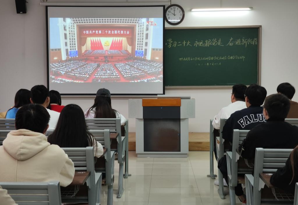 10月16日上午10时,万众瞩目的中国共产党第二十次全国代表大会在北京隆重召开,习近平总书记代表十九届中央委员会向大会作报告,为深入学习宣传贯彻党的二十大精神,太阳成集团tyc7111cc和经济与管理公司党总支第一时间组织师生党员干部在第一教学楼214、215教室集中观看大会现场直播。