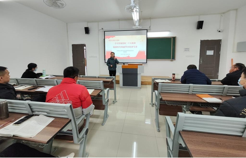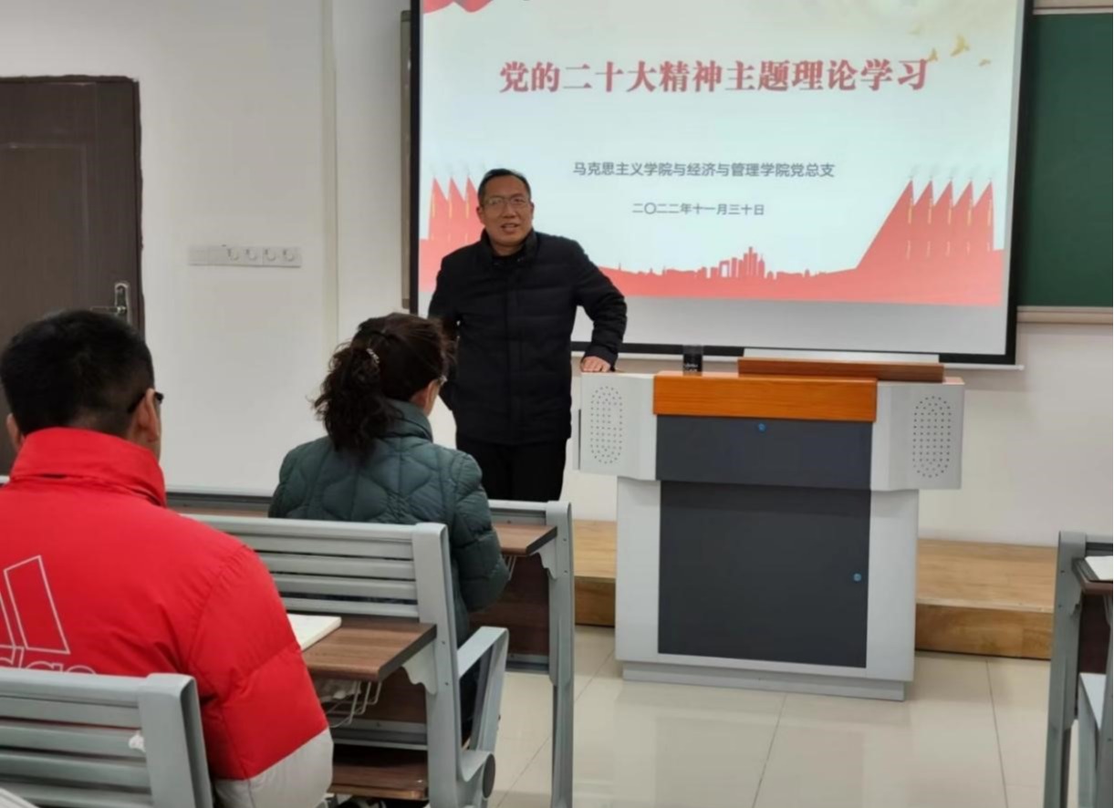为深入学习宣传贯彻党的二十大精神,切实把思想和行动统一到党的二十大精神上来,引导全体党员干部、教师积极响应时代呼唤,紧密团结在以习近平同志为核心的党中央周围,深刻感悟思想伟力,领悟大会精神。11月30日下午,太阳成集团tyc7111cc与经济管理公司党总支组织开展了关于党的二十大精神主题学习活动,由党总支书记吴玲以“做新时代绚丽华章的谱写者”为主题,在二教421为全体教师上了一堂生动且深入的专题党课。