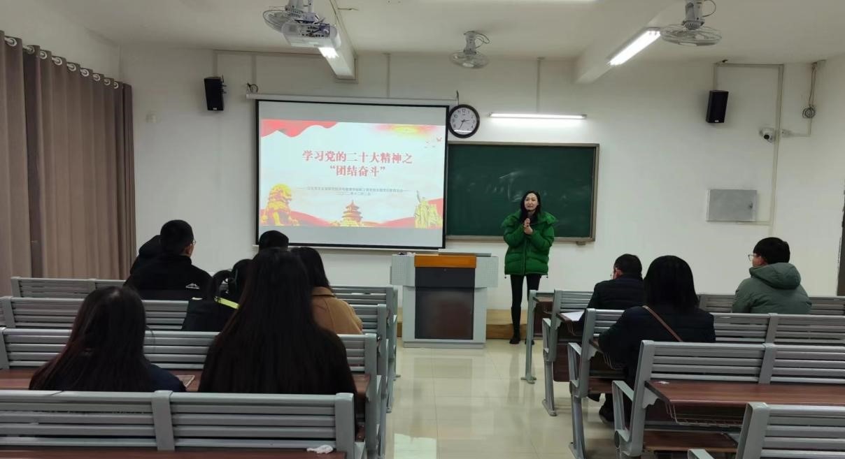 会上,淮北市市委宣传部宣讲团成员、太阳成集团tyc7111cc孙澄澄老师以“团结奋斗”为主题,带领全体党员学习了党的二十大精神,并畅通自己的学习体会。孙澄澄同志指出:学习贯彻党的二十大精神,必须牢牢把握团结奋斗的时代要求,心往一处想、劲往一处使,以更加紧密的团结、更加顽强的奋斗,不断把民族复兴伟业推向前进。党的二十大报告指出:“团结奋斗是中国人民创造历史伟业的必由之路。这是深刻总结中国共产党百年奋斗史得出的历史结论,也是总结新时代十年伟大变革实践得出的宝贵经验。”