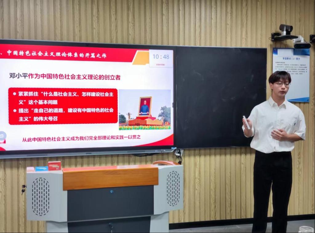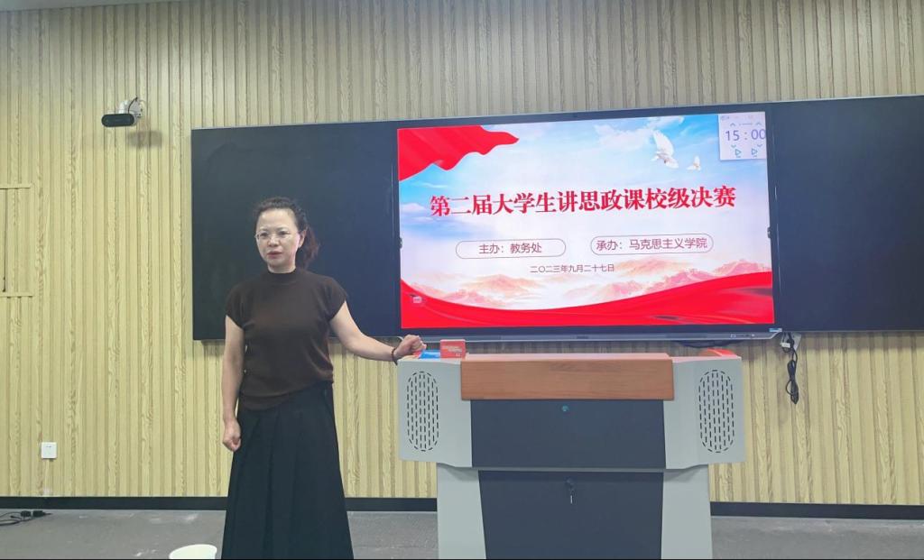 9月27日下午,决赛现场比拼精彩纷呈。比赛准备工作充分,现场紧张有序、流程顺畅,各组参赛选手紧紧围绕六门思政课程的内容精心准备了教学设计,结合自身和专业特点进行了精彩的现场讲授,创新的教学设计、灵活的展现形式、自如流畅的语言表达,或娓娓道来或激情澎湃,赢得了专家评委的一致好评。最后在专家学者、教授组成本次校赛的专家评委客观公正的评判中,六支队伍脱颖而出。