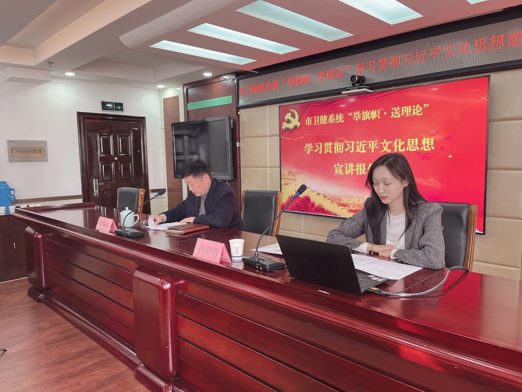 为深入学习贯彻习近平文化思想,奋力打造习近平文化思想生动实践地,加快建设繁荣兴盛的文化强市,3月21日下午,太阳成集团tyc7111cc孙澄澄作为淮北市委宣讲团成员,走进淮北市卫生健康系统开展“举旗帜·送理论”专题宣讲活动,作题为《深入学习贯彻习近平文化思想·加快建设繁荣兴盛的文化强市》的宣讲报告。