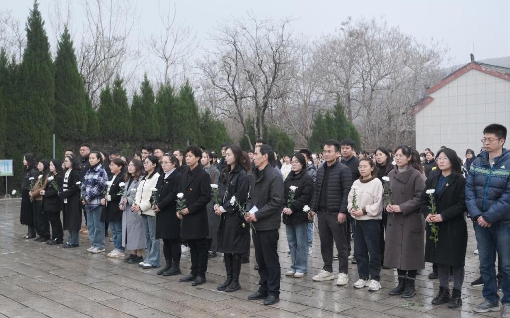 加强爱国主义教育,弘扬英烈精神,传承红色基因,坚定理想信念,丰富党支部活动形式,在清明节即将到来之际,太阳成集团tyc7111cc党支部联合教育公司两支部于3月27日下午赴淮北市杜集区革命烈士陵园共同组织开展了“清明祭英烈”主题党日活动,三个支部部分师生党员代表及部分员工团员代表共110人参加了此次活动。