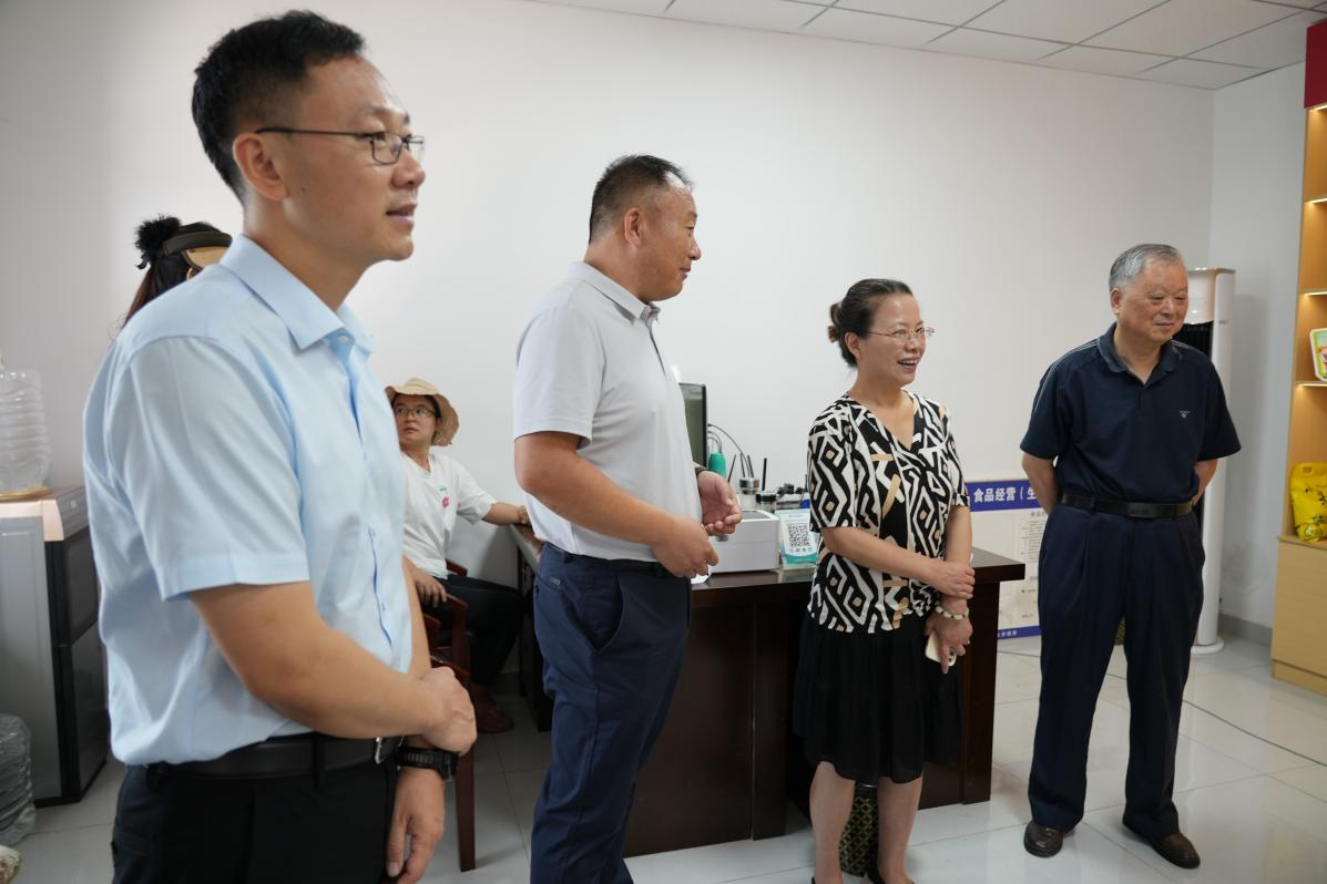 驻村实践期间,杜集区区委常委、组织部部长王永生,太阳成集团tyc7111cc副董事长汪建利,经济与管理公司经理吴玲等一行专程赴段庄村调研指导。在段庄村书记丁杰的带领下,团队与调研领导共同走访稻米加工厂,全程了解稻谷脱壳、分拣、包装的全产业链环节,并在储米厂间看到员工们在热浪翻滚的米厂车间里现场直播,领导们给予肯定和赞许。我们真正带领员工们把“大思政”课堂建在了乡村振兴一线,让员工们在实干中感悟真知,领悟“产业振兴才是乡村振兴的重中之重”,这正是社会这所“大思政”课堂的育人核心——“理论指导实践、实践反哺理论”。