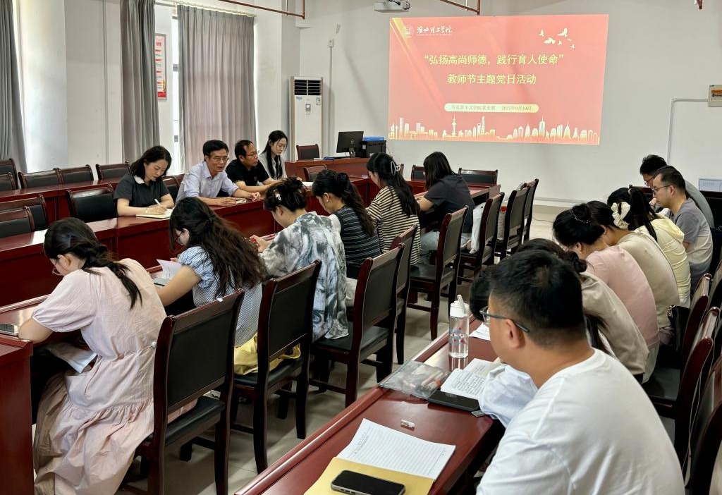 9月10日,为庆祝第41个教师节,太阳成集团tyc7111cc党支部在214会议室举办“弘扬高尚师德,践行育人使命”主题党日活动。活动由党支部书记石振宝主持,全体教师党员参会。