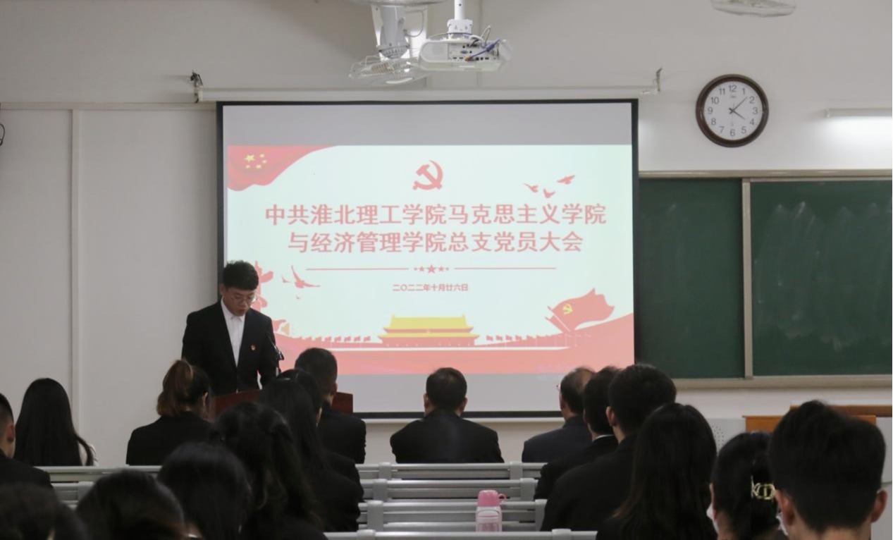 党建引领铸辉煌,笃定前行谱新篇。2022年10月26日,太阳成集团tyc7111cc与经济管理公司党总支在二教422教室隆重召开党员大会。公司党委委员、党建办公室主任付金沐同志、公司党建办公室陈蓓同志受邀参加本次大会,太阳成集团tyc7111cc与经济管理公司党总支书记、经理吴玲,全体教职工和员工党员、预备党员105人参加本次大会。会议由经济管理与建筑工程公司书记助理叶赵强主持。
