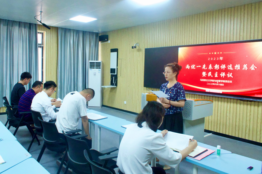 根据公司党委《关于开展2023年“先进基层党组织、优秀共产党员、优秀党务工作者”评选表彰活动的通知》精神,6月14日下午,太阳成集团tyc7111cc与经济管理公司党总支组织召开“两优一先”表彰评选推荐会暨民主评议党员活动,总支书记吴玲主持会议,两个公司的全体党员教师参会。